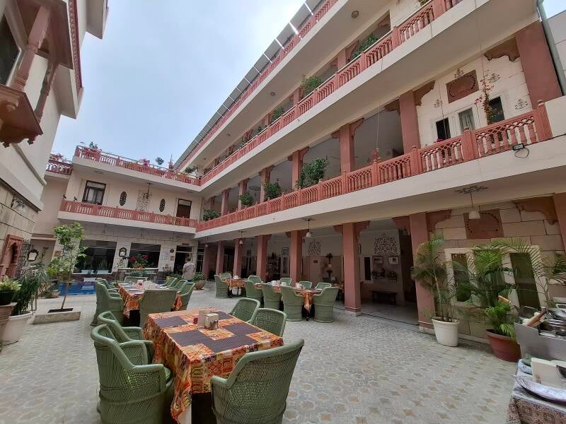 Unsere zweite Unterkunft, von der Architektur eine Klasse besser und teurer, aber etwas in die Jahre gekommen, mit gutem Essen. Lage etwas außerhalb von Jaipur.